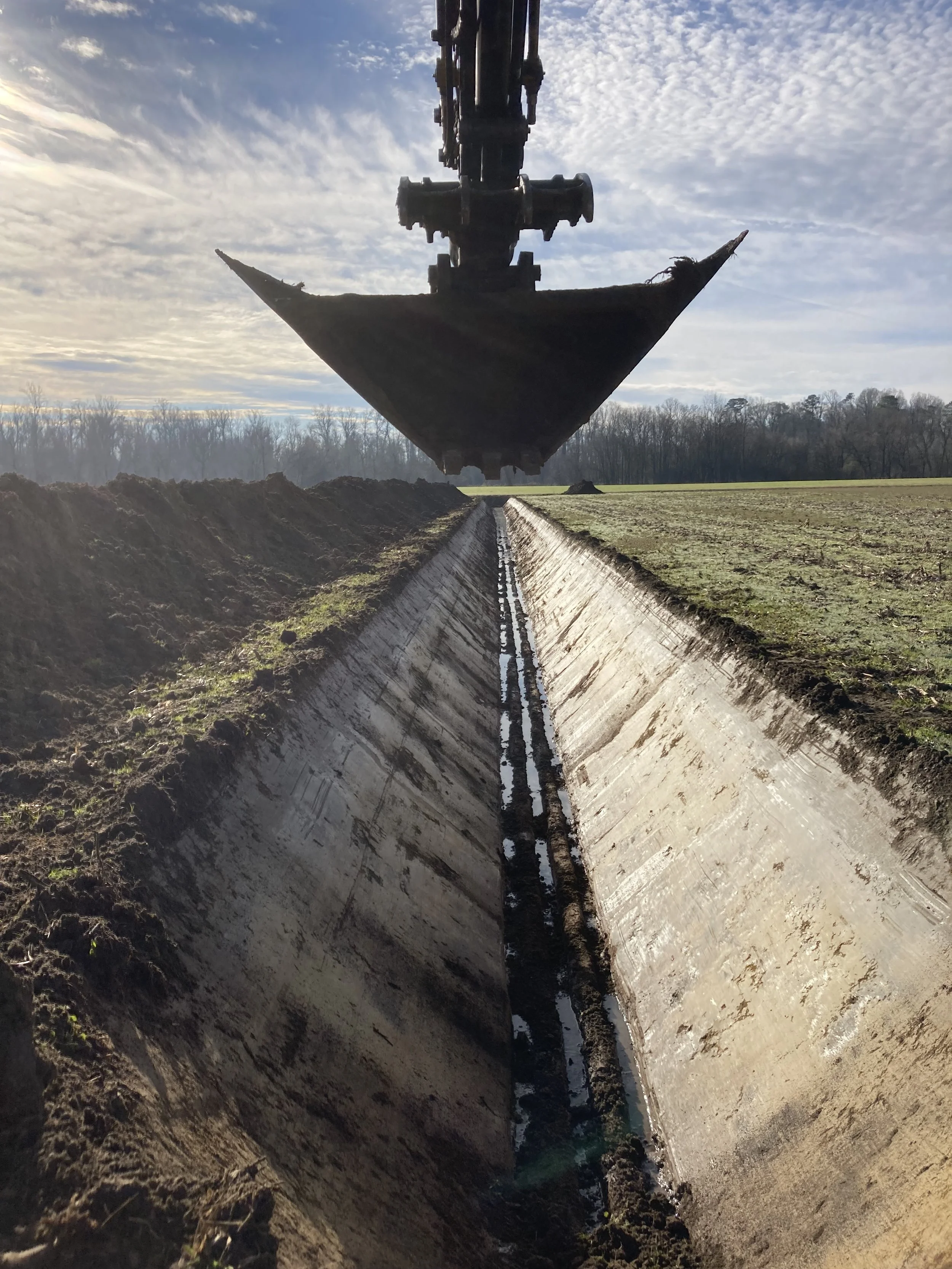 We use grade control, GPS and laser system technology to ensure proper drainage and the best quality job for our customers. Ditching services include cleaning out existing ditches and new ditch construction, V-ditch straight line ditching, replacing and installing new culverts, grading and backfilling. Poorly maintained ditches and broken or undersized culverts greatly impact the performance of water flow. Our team works with our customers to identify drainage problem areas or areas that may be troublesome later and implement a plan to rectify the issue.